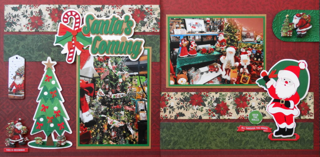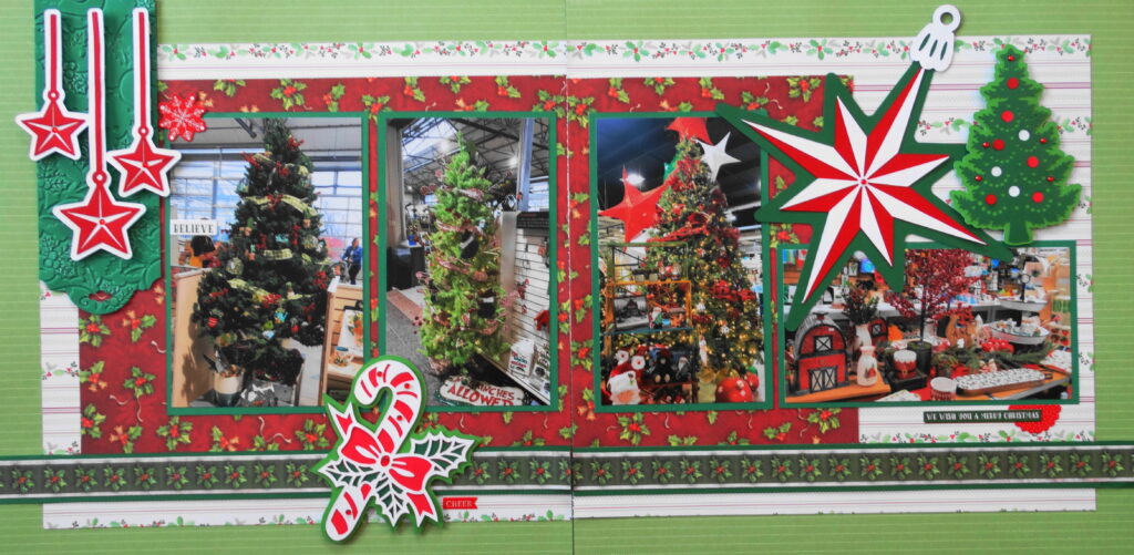 The papers are from the Craft Smith Always Christmas Pad. All images for this page are in Cricut Access. I believe this background design was a CTMH layout.