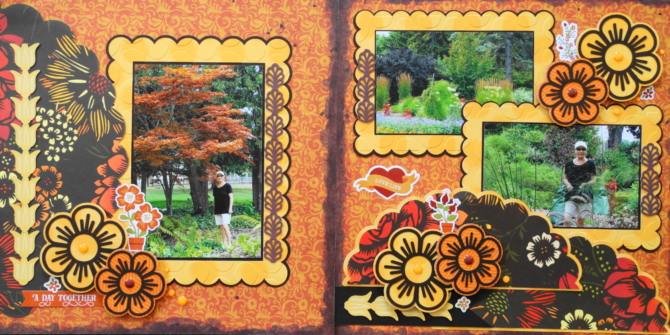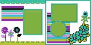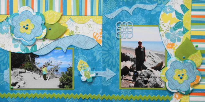 This is such an easy page to make. This paper is from K & Co. Lucky Flowers. The triangle frames are from Hello Creationsand the title is from Apple Grove. I embellished with Creative Memories Floral Essentials.