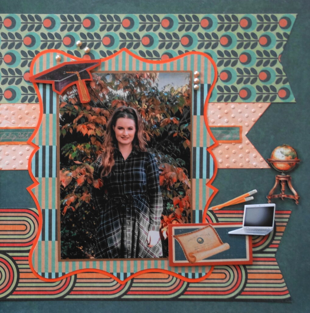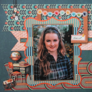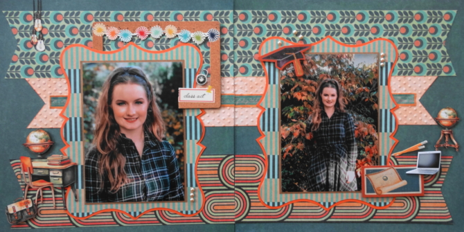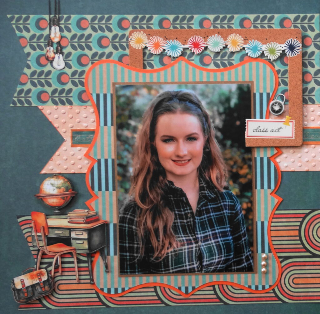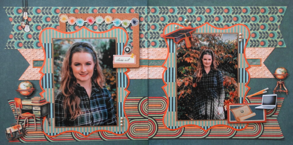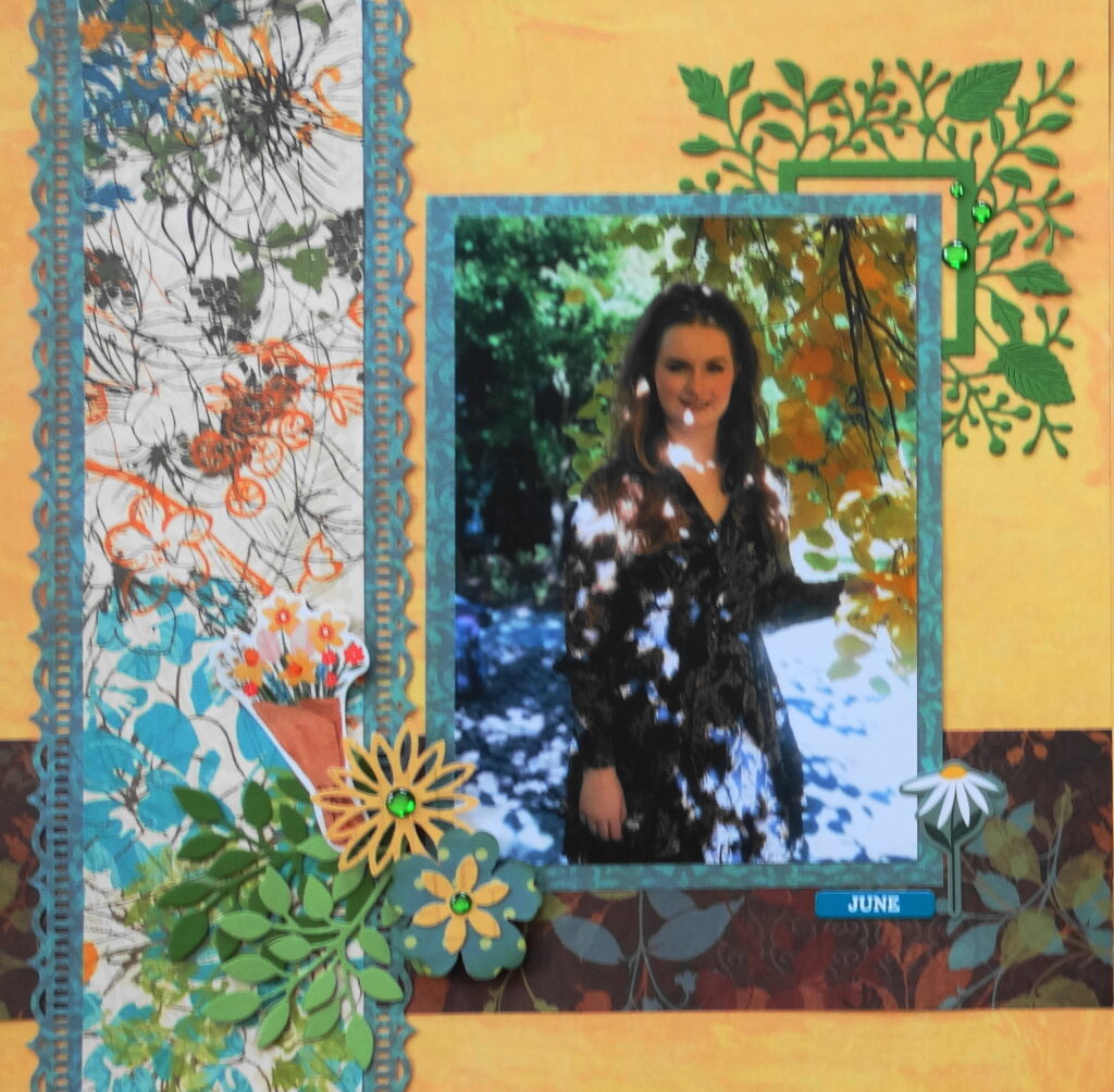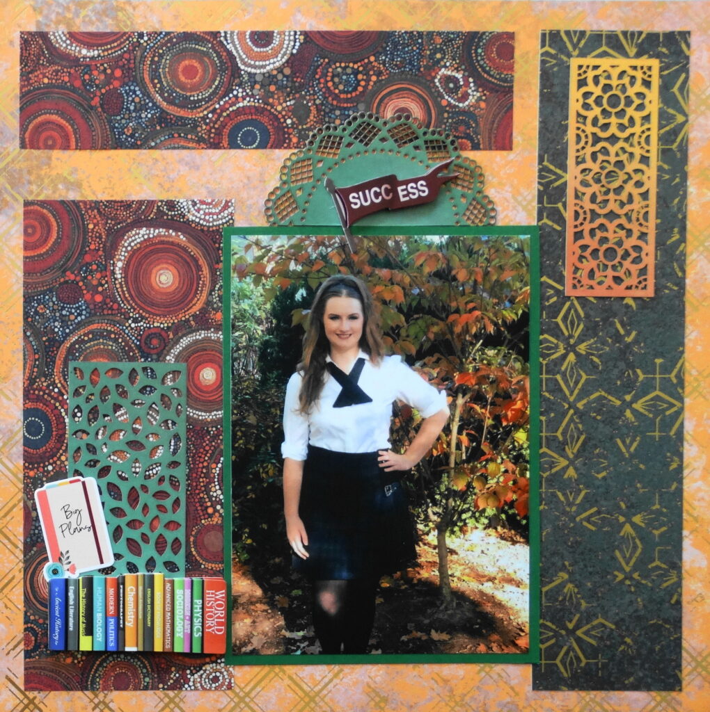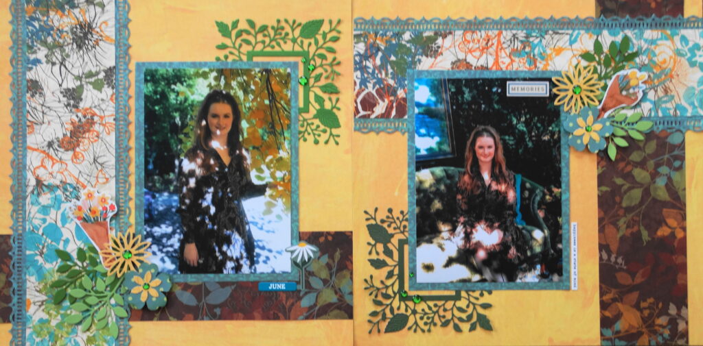 The papers are from the Stampin’ Up Friendly Hello Collection. The layout is from a Creative Memories designer. All images for this page are in Cricut Access.