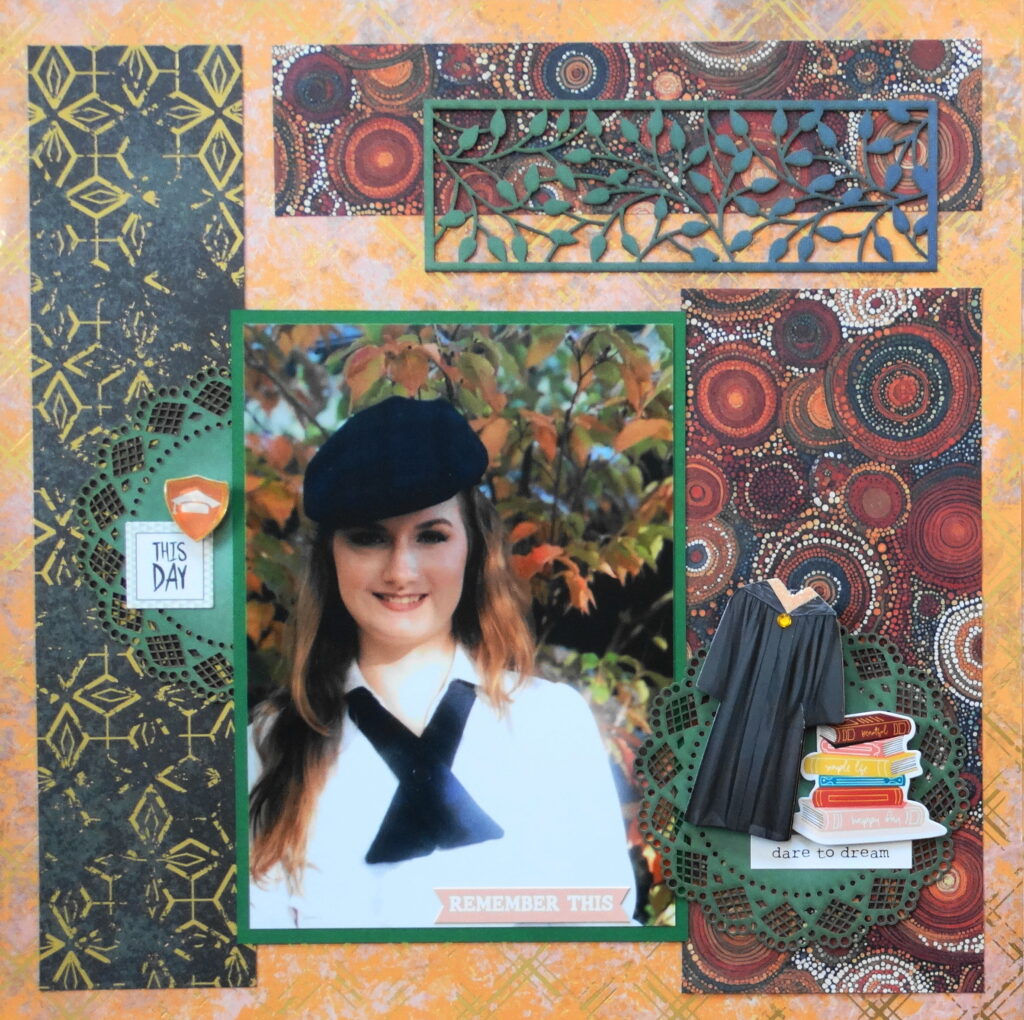 The papers and embellishments are all from the Creative Memories National Scrapbook Day 2025 Collection. All images for this page are in Cricut Access.
