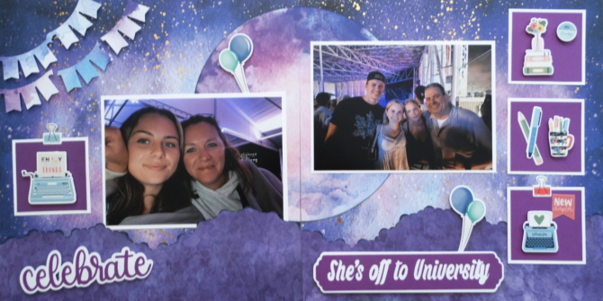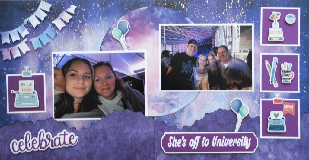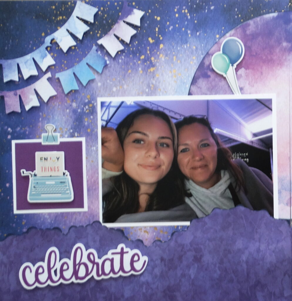 The papers and embellishments are from the Creative Memories Celestial Delights Collection. All images for this page are in Cricut Access.