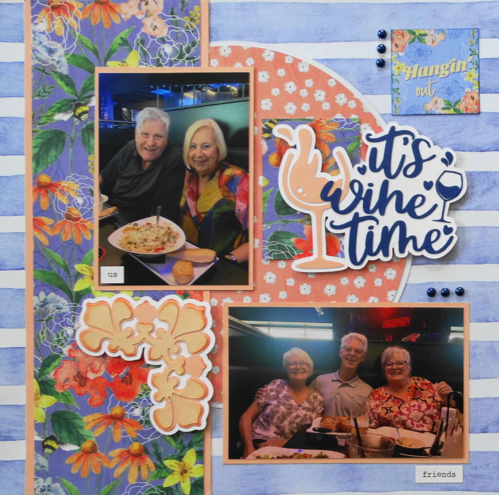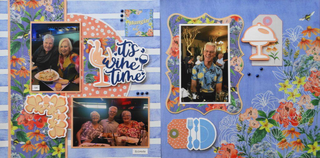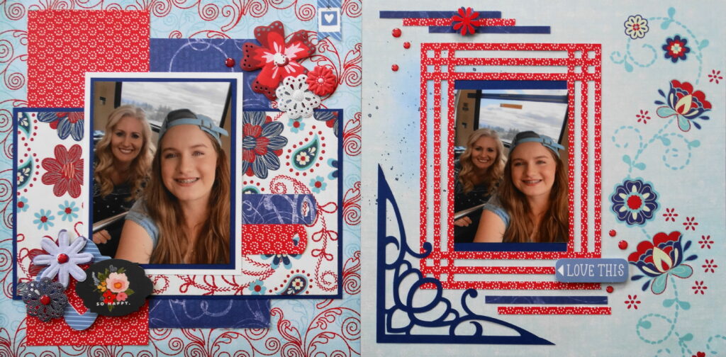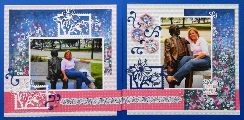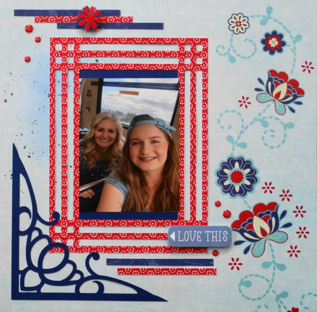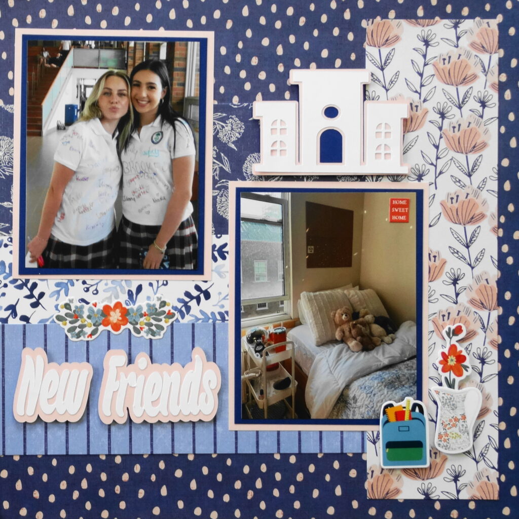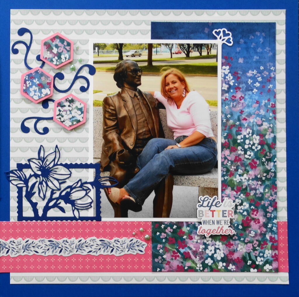 The papers are from the Stampin’ Up Friendly Hello Collection. The layout is from a Creative Memories designer. All images for this page are in Cricut Access.