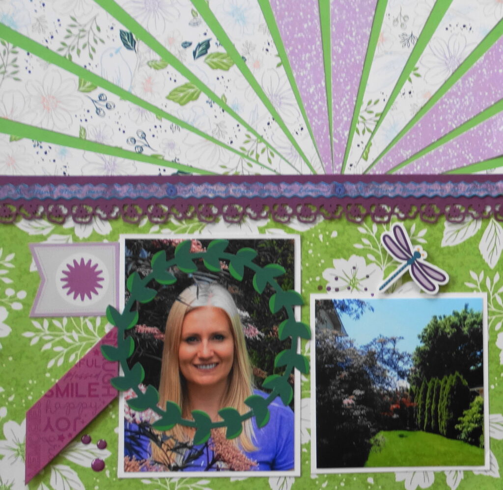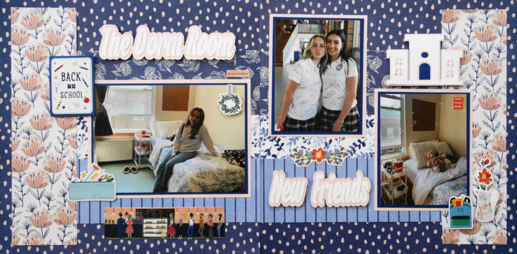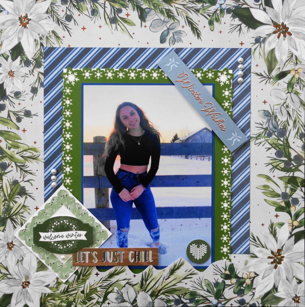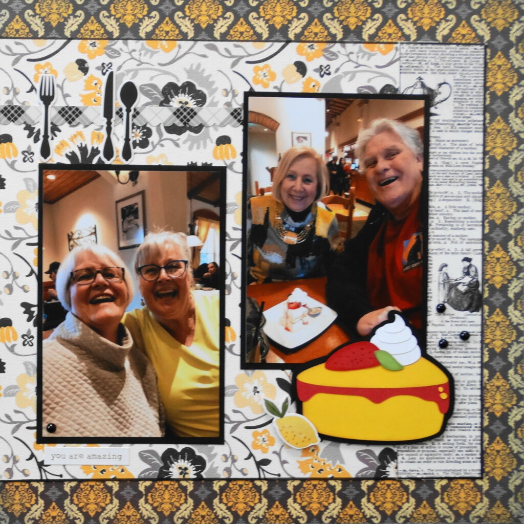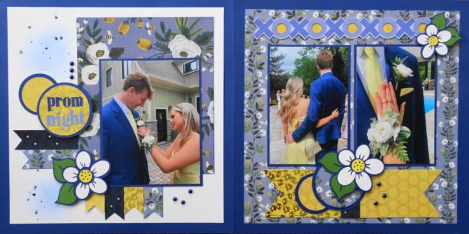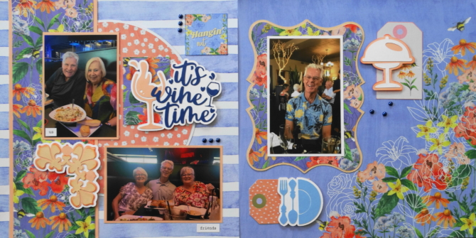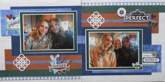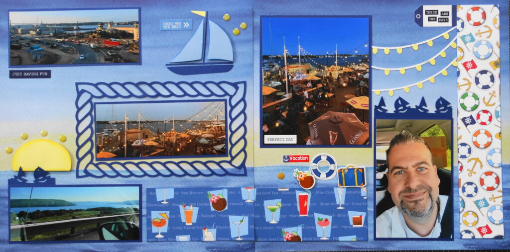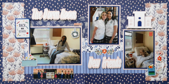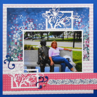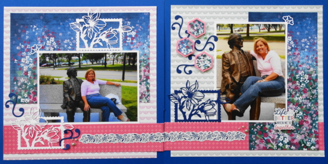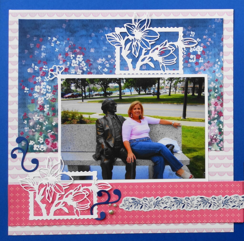 The papers are from the Stampin’ Up Friendly Hello Collection. The layout is from a Creative Memories designer. All images for this page are in Cricut Access.