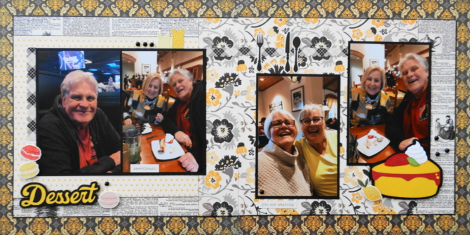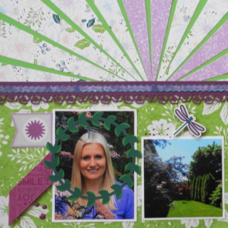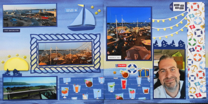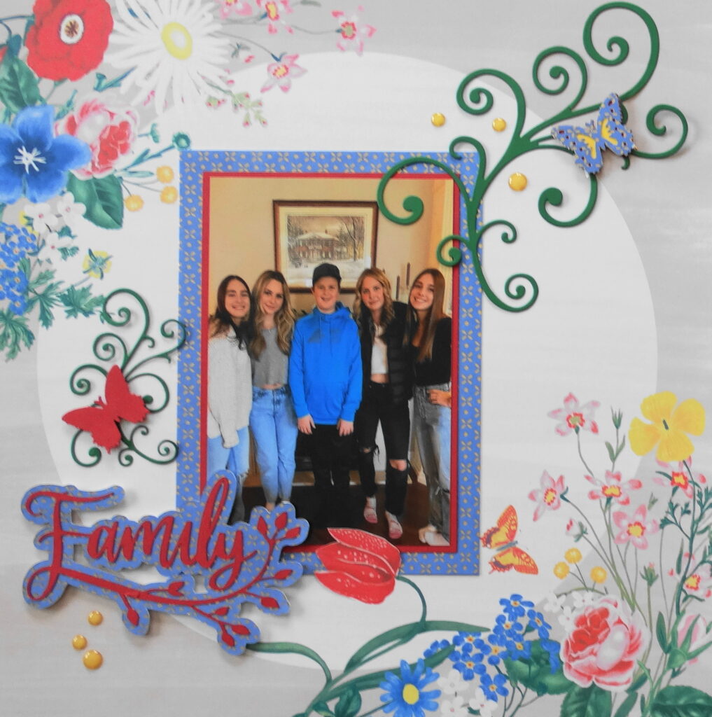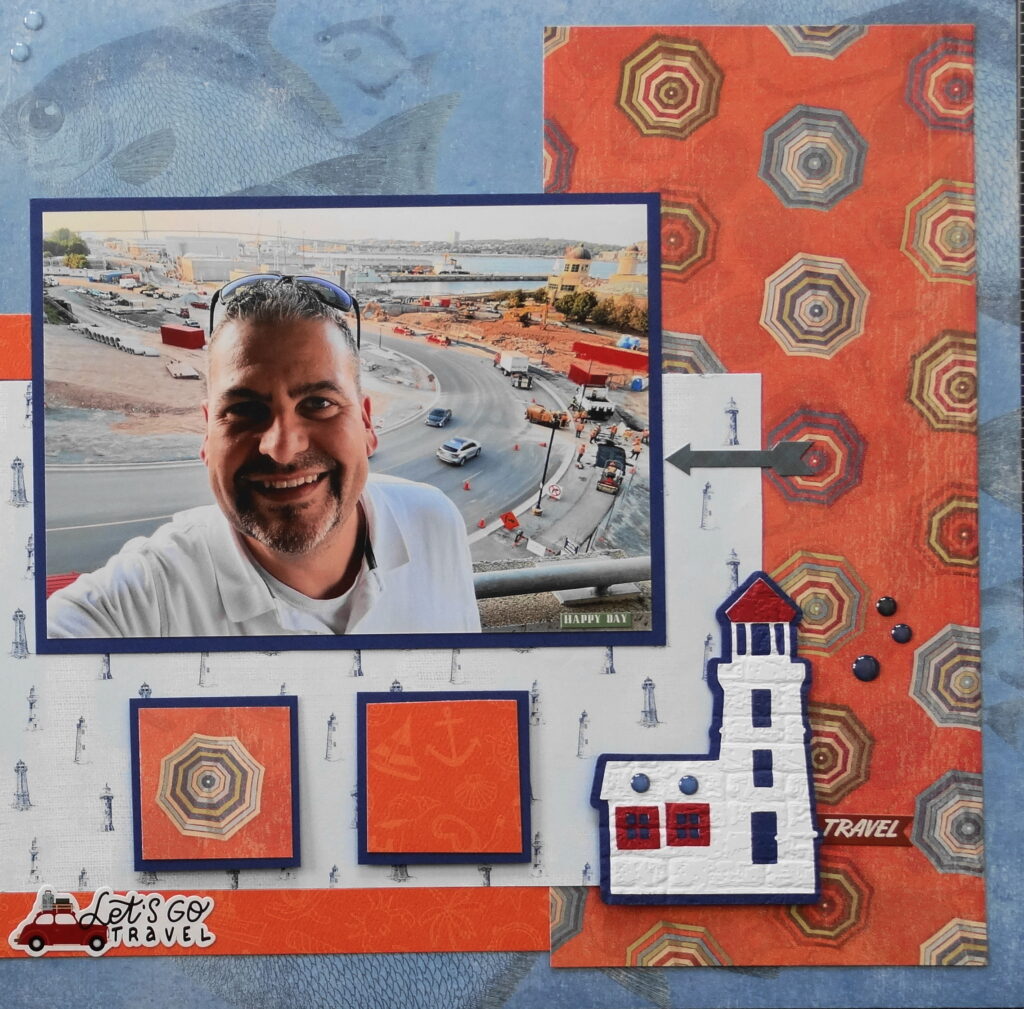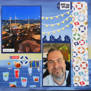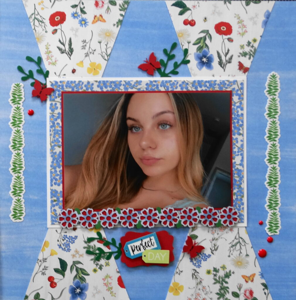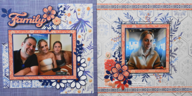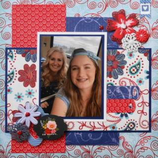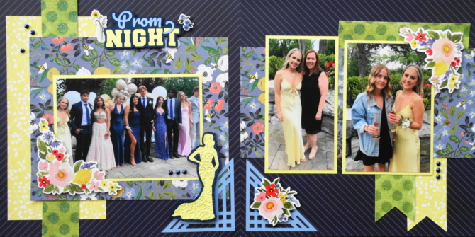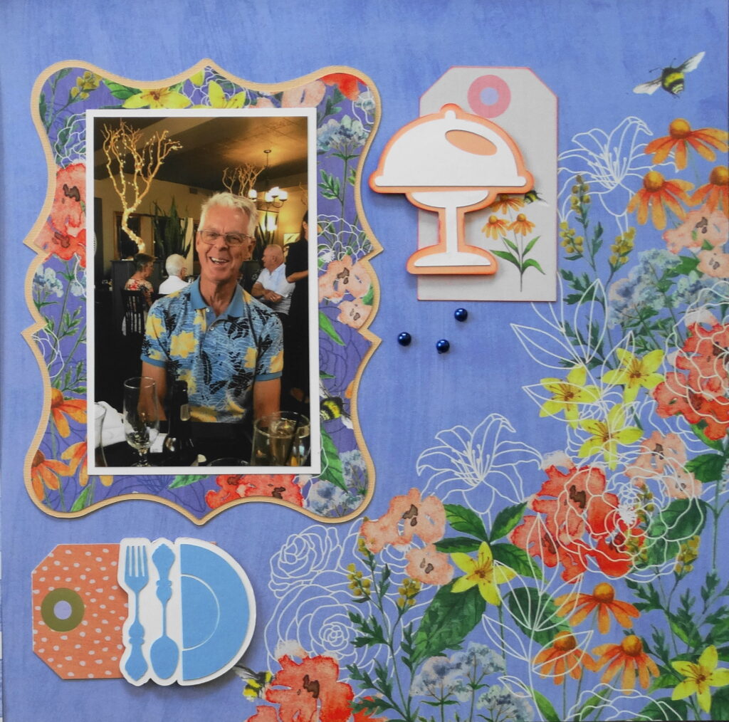 The papers are from the Stampin’ Up Friendly Hello Collection. The layout is from a Creative Memories designer. All images for this page are in Cricut Access.