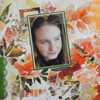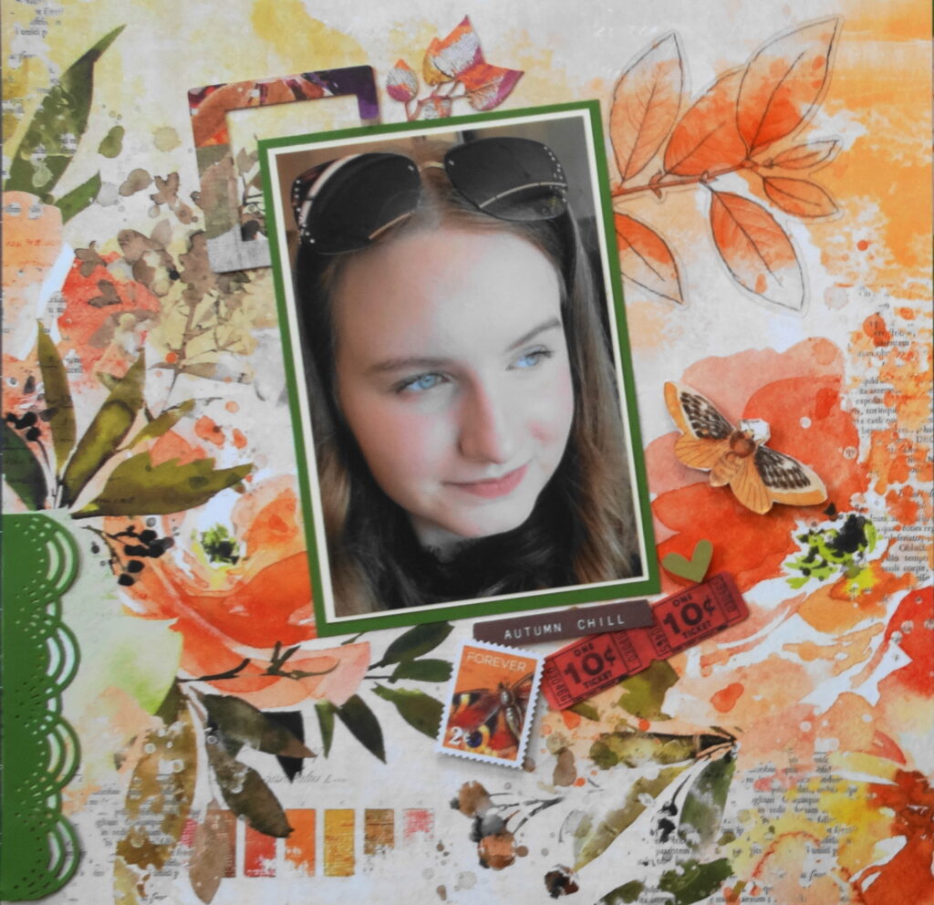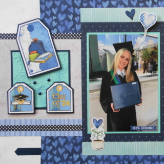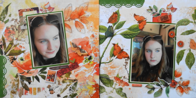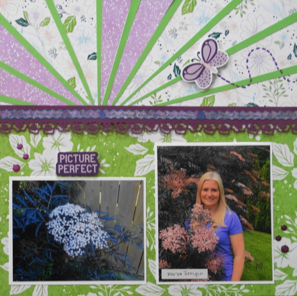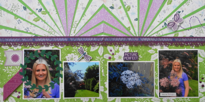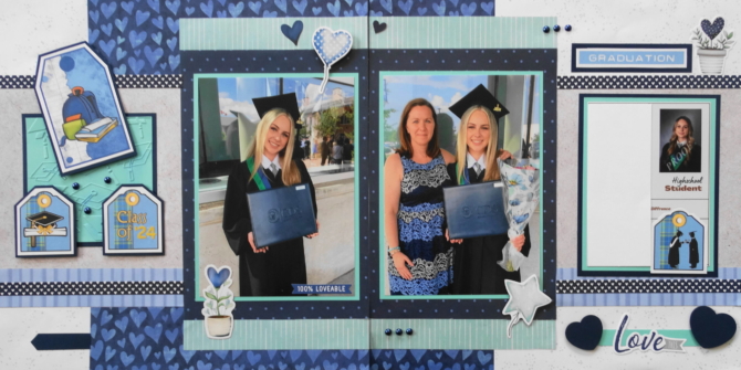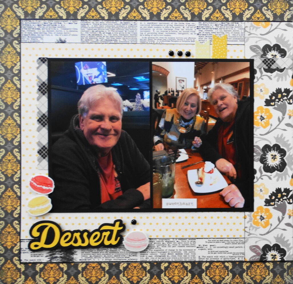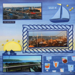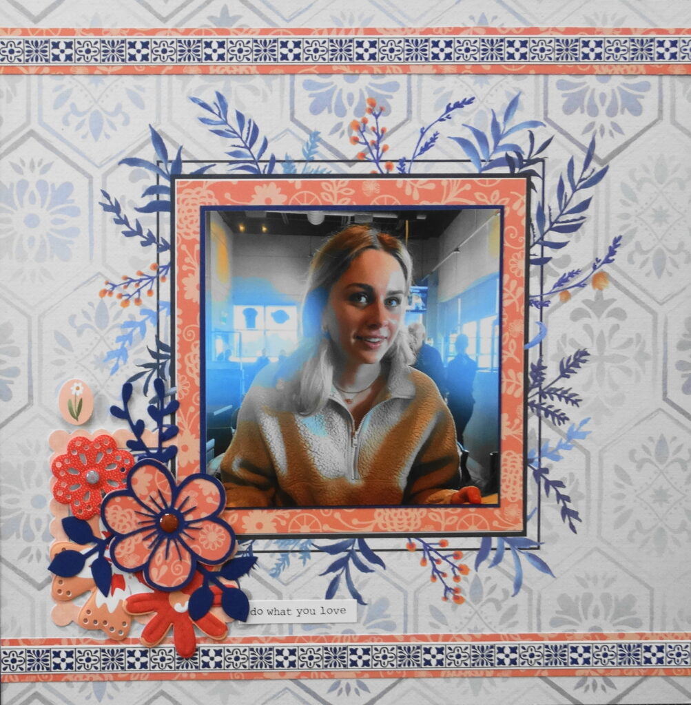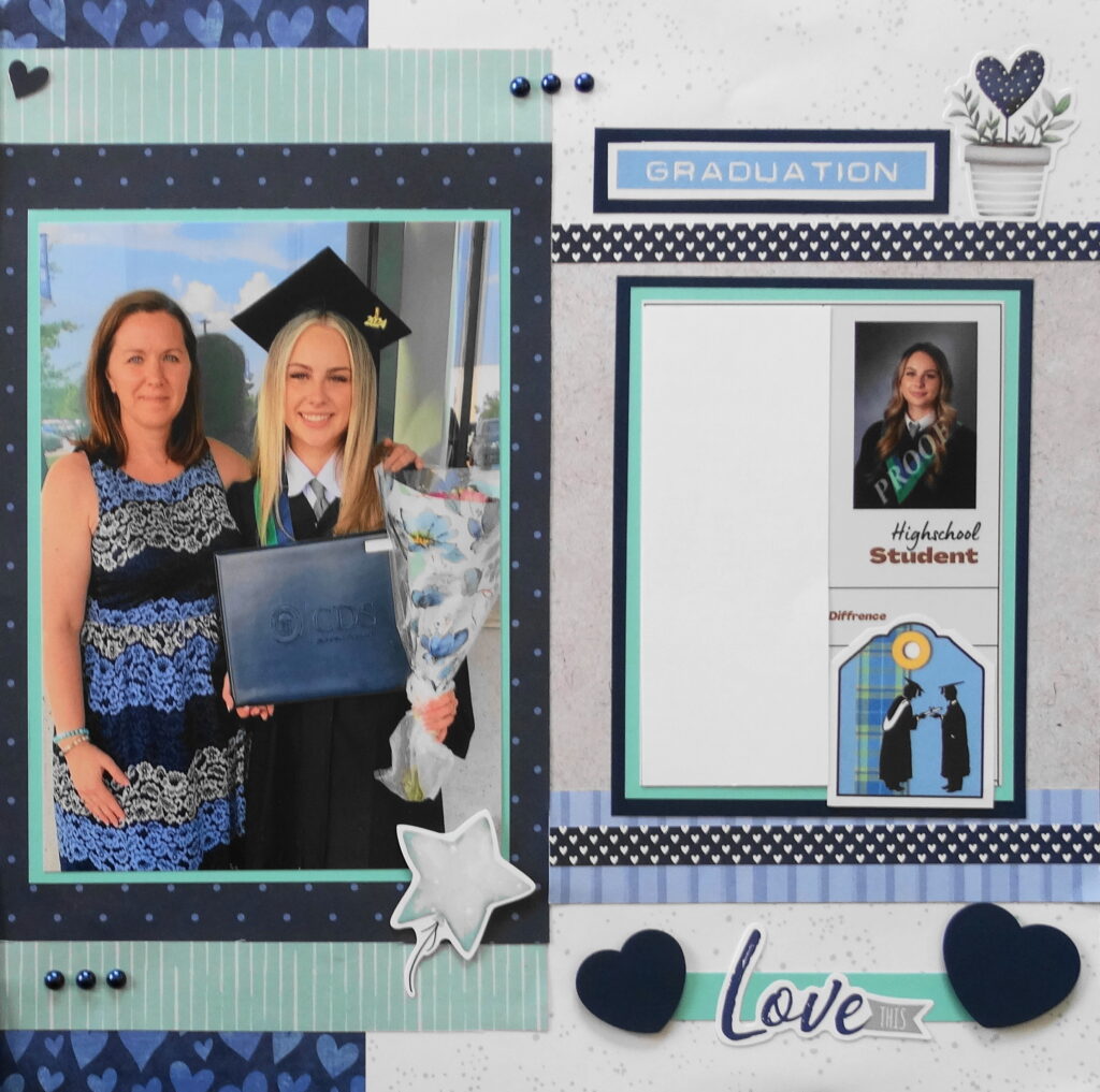 The papers are from the Stampin’ Up Friendly Hello Collection. The layout is from a Creative Memories designer. All images for this page are in Cricut Access.