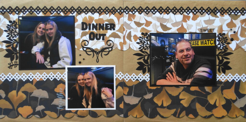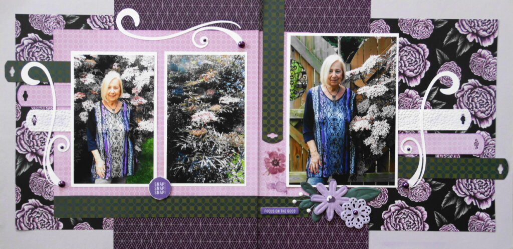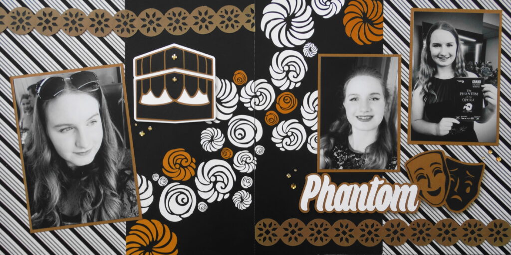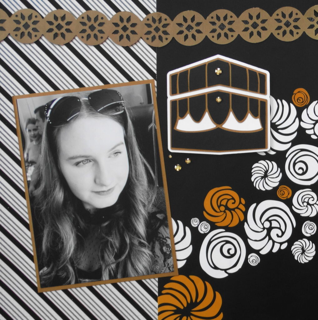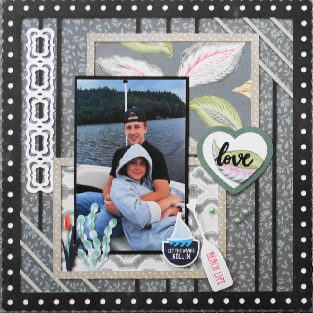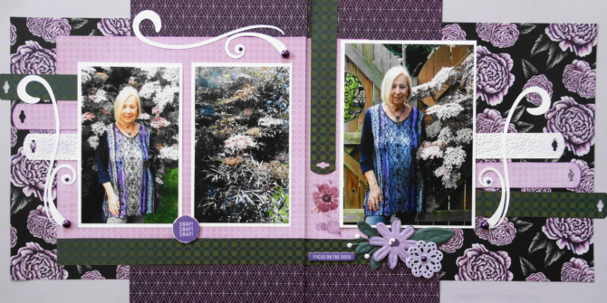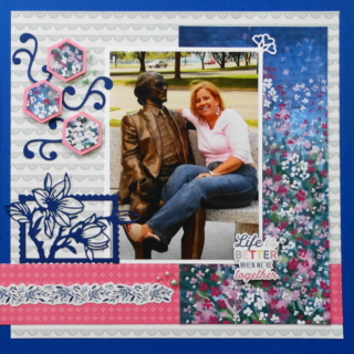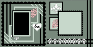 The papers are from the Park Lane Floral Leaves Pad and the LHP black background is a laser cut page from Creative Memories called Love Wins. All images for this page are in Cricut Access.
