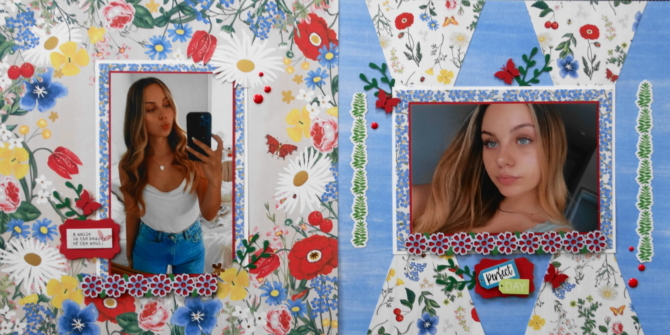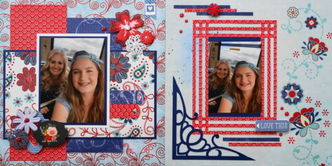 The papers are from the DCWV Teenage Dream Stack and the RHP border is from CM Fresh Fusion Collection. All images for this page are in Cricut Access.