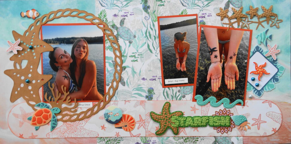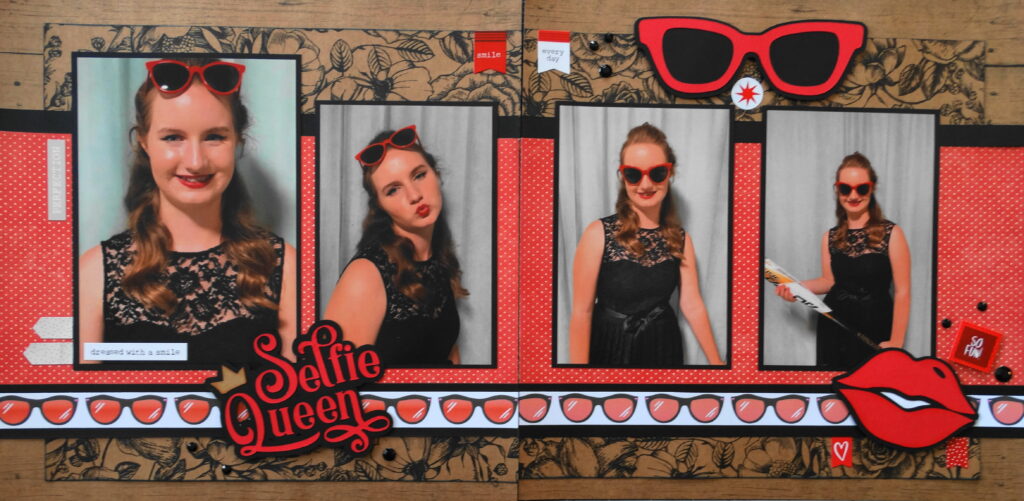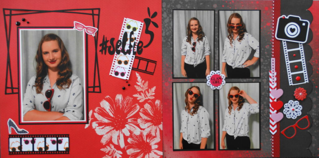 The papers and embellishments are all from the Creative Memories National Scrapbook Day 2025 Collection. All images for this page are in Cricut Access.