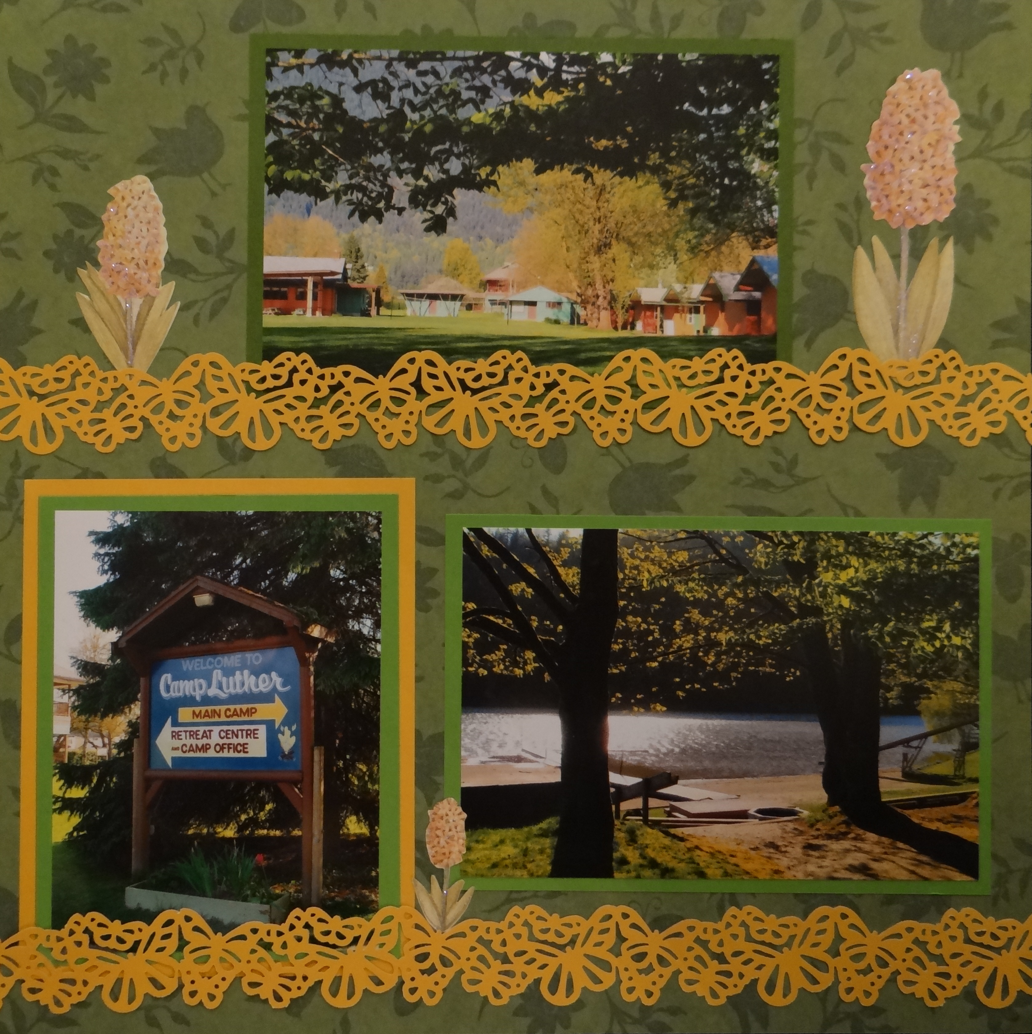 The scissors and border are from Cricut Wall Decor and More. The title “Retreat” is from Life’s a Beach. I used a bunch of scrapbook stickers from Creative Memories.