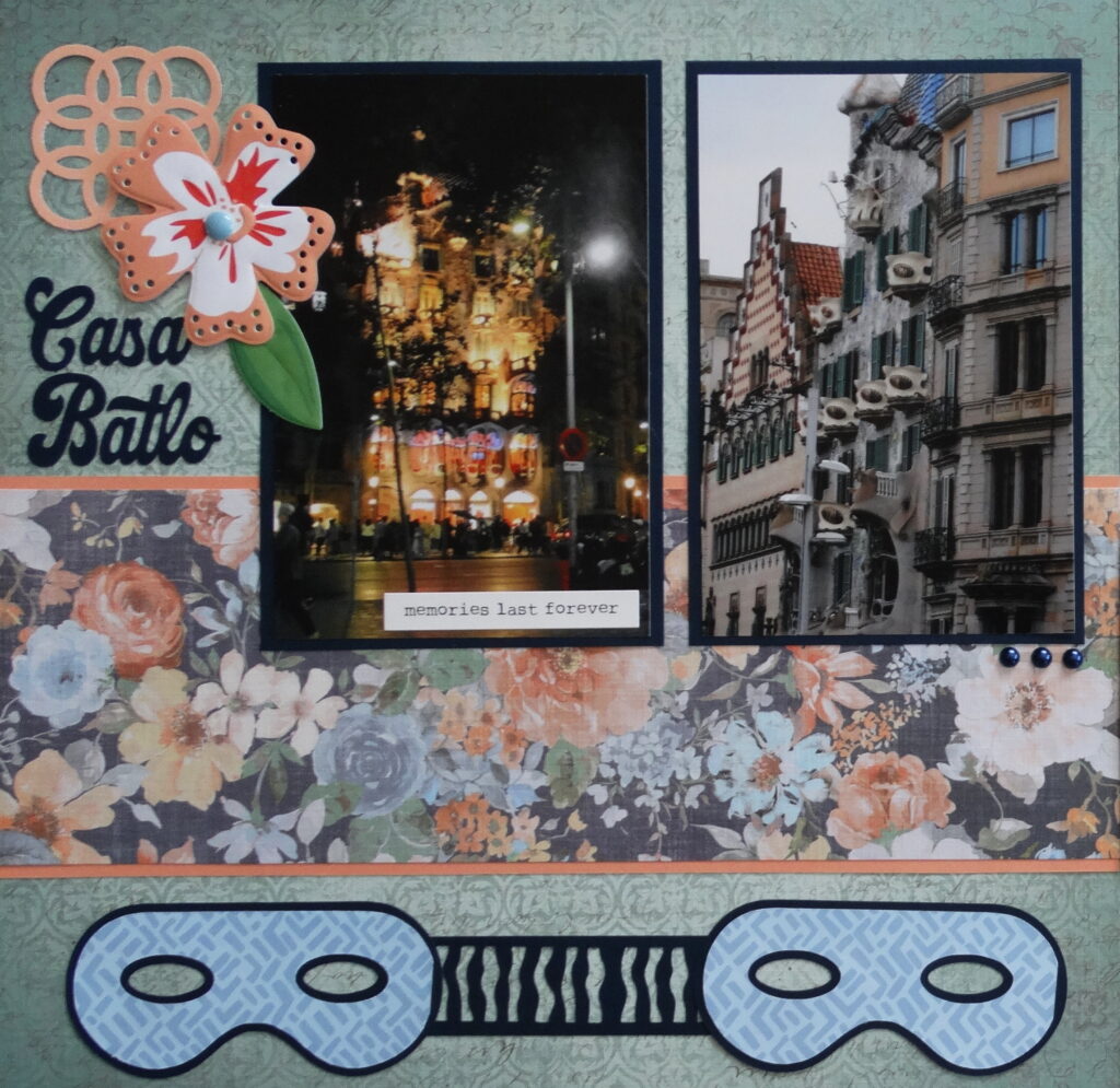 The papers are from the CM Barcelona Coll., We Are Memory Keepers Jet Set Pad, and Recollections Blue Marbling. All images for this page are in Cricut Access.