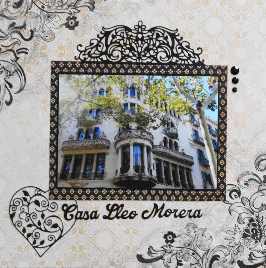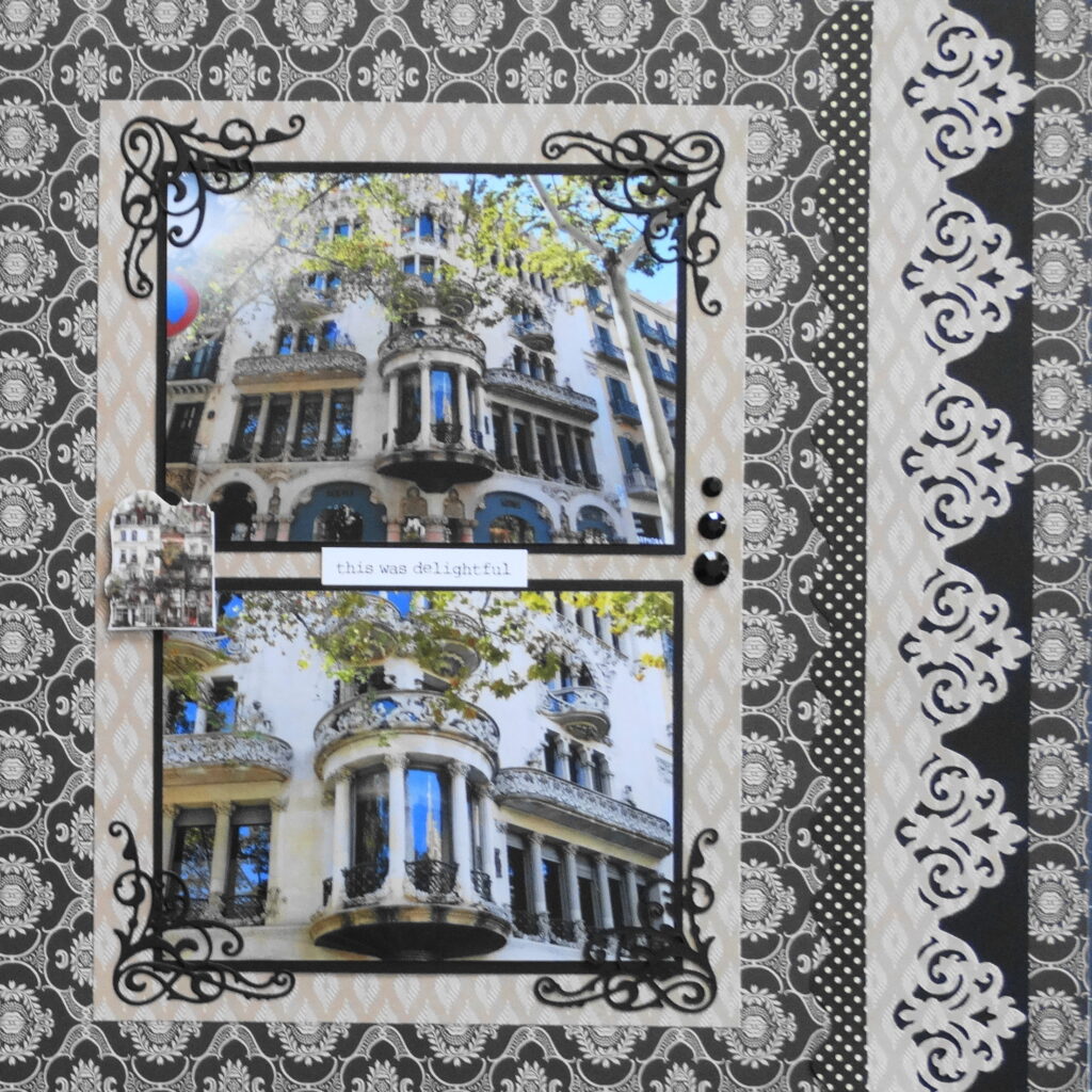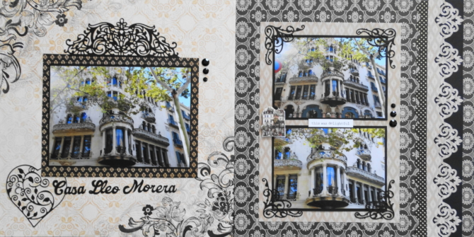 The papers are from the Karen Foster Design Dance Brocade Collection. I used the CM Damask frame border punch along the right side. All images for this page are in Cricut Access.